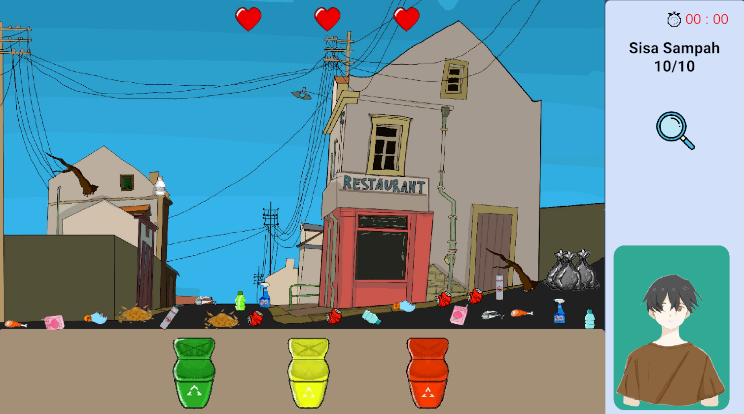 Let's Clean Up is a game that aims to clean up trash in an area or region. Players will pick up trash and throw it into the trash can according to its type. Thus, players will indirectly recognize the various types of garbage that exist.